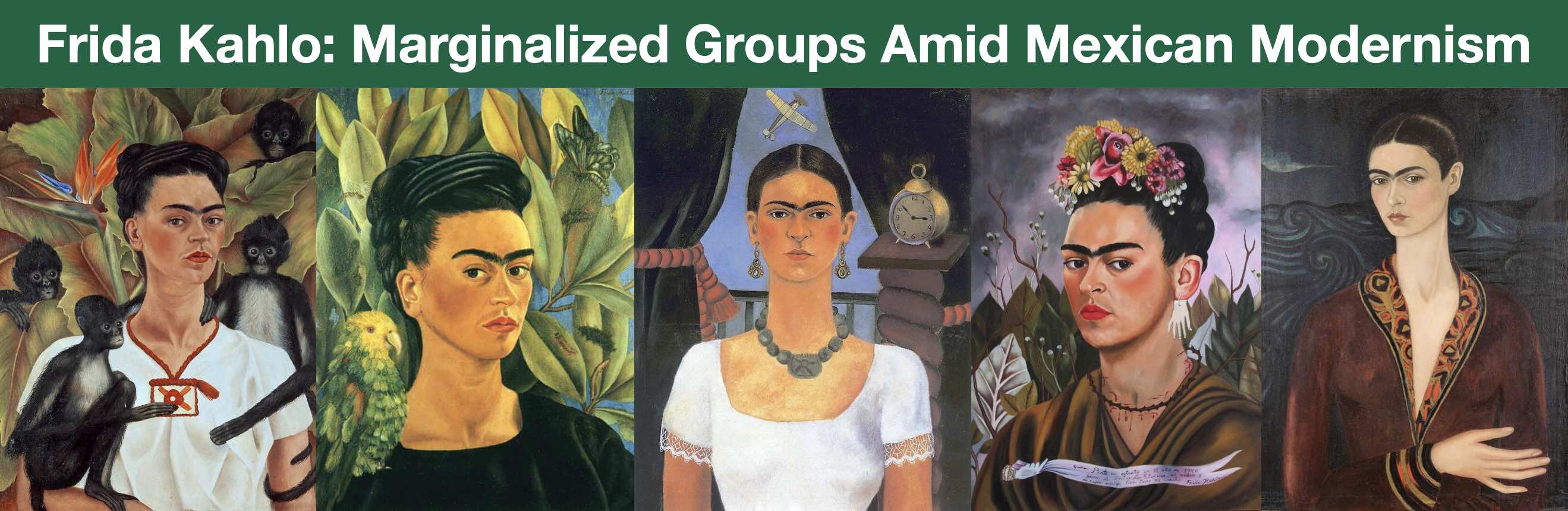 Header artwork credit: Frida Kahlo: “Self Portrait with Monkeys”, 1943; “Self portrait with Bonito”, 1941;